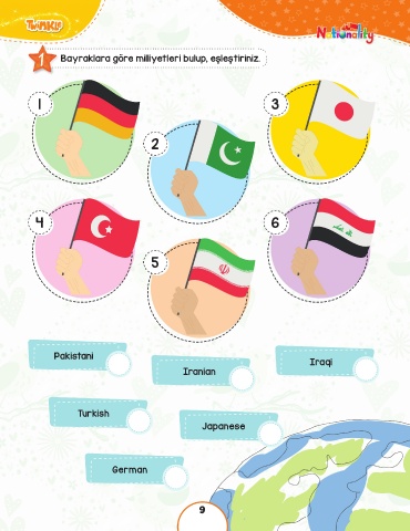 1 Bayraklara göre milliyetleri bulup, eşleştiriniz. 1 3 2 4 6 5 Pakistani Iraqi Iranian Turkish Japanese German 9