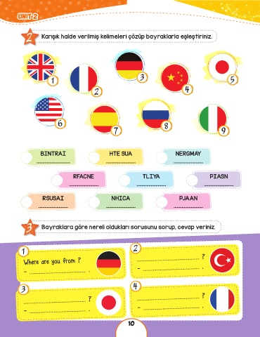 2 Karışık halde verilmiş kelimeleri çözüp bayraklarla eşleştiriniz.