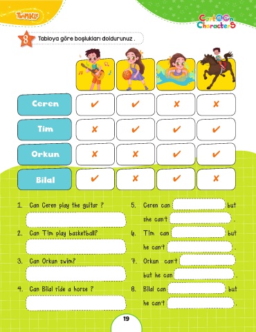 3. Can Orkun swim? 7. Orkun can’t ………………………