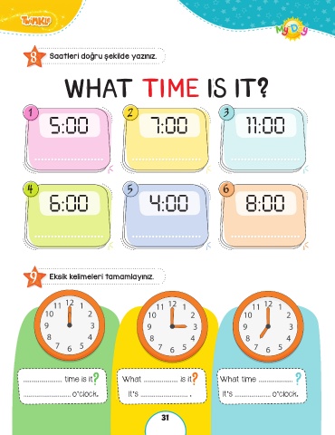 ............................. o’clock. It’s ............................. . It’s ...................... o’clock.