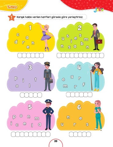 1 Karışık halde verilen harfleri görsele göre yerleştiriniz. 1 2 c s s a u e m d r n i b e n s a n 3 4 p e a r i t o l m r f 5 6 p o n m n e i c e l a u r s 39