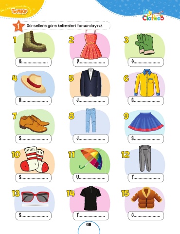 1 Görsellere göre kelimeleri tamamlayınız.