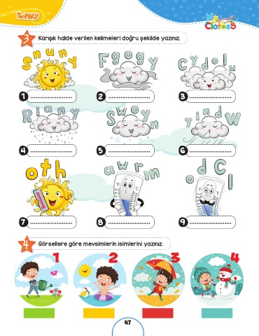 4 Görsellere göre mevsimlerin isimlerini yazınız.