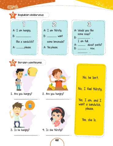 3. Is he hungry? 4. Is she thirsty?