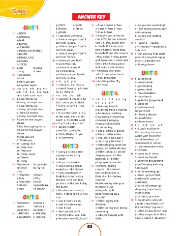 5- CRAYON 3- Where are you from? I basketball / swim and 3 – Slowly 4 – Say/please
