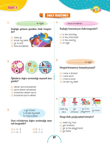 Öğünlerin doğru sıralandığı seçenek han- c) I read a book